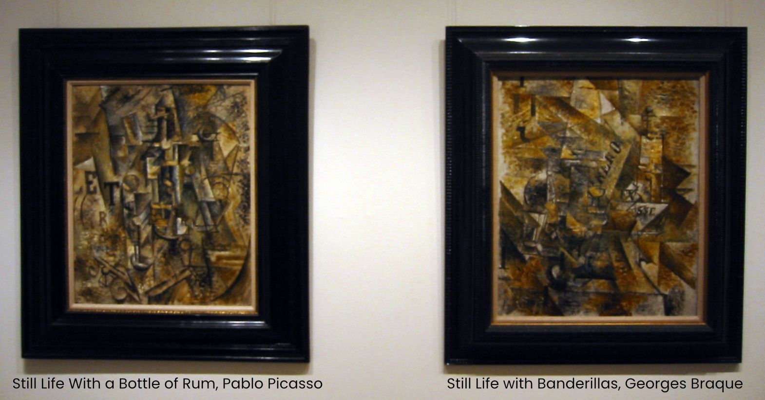 Ele confirmou que um era do Picasso, mas o do lado não. Era do Georges Braque, vizinho do pintor espanhol, que se inspirou (para ser educado) no companheiro mais famoso. Falou isso de cabeça.