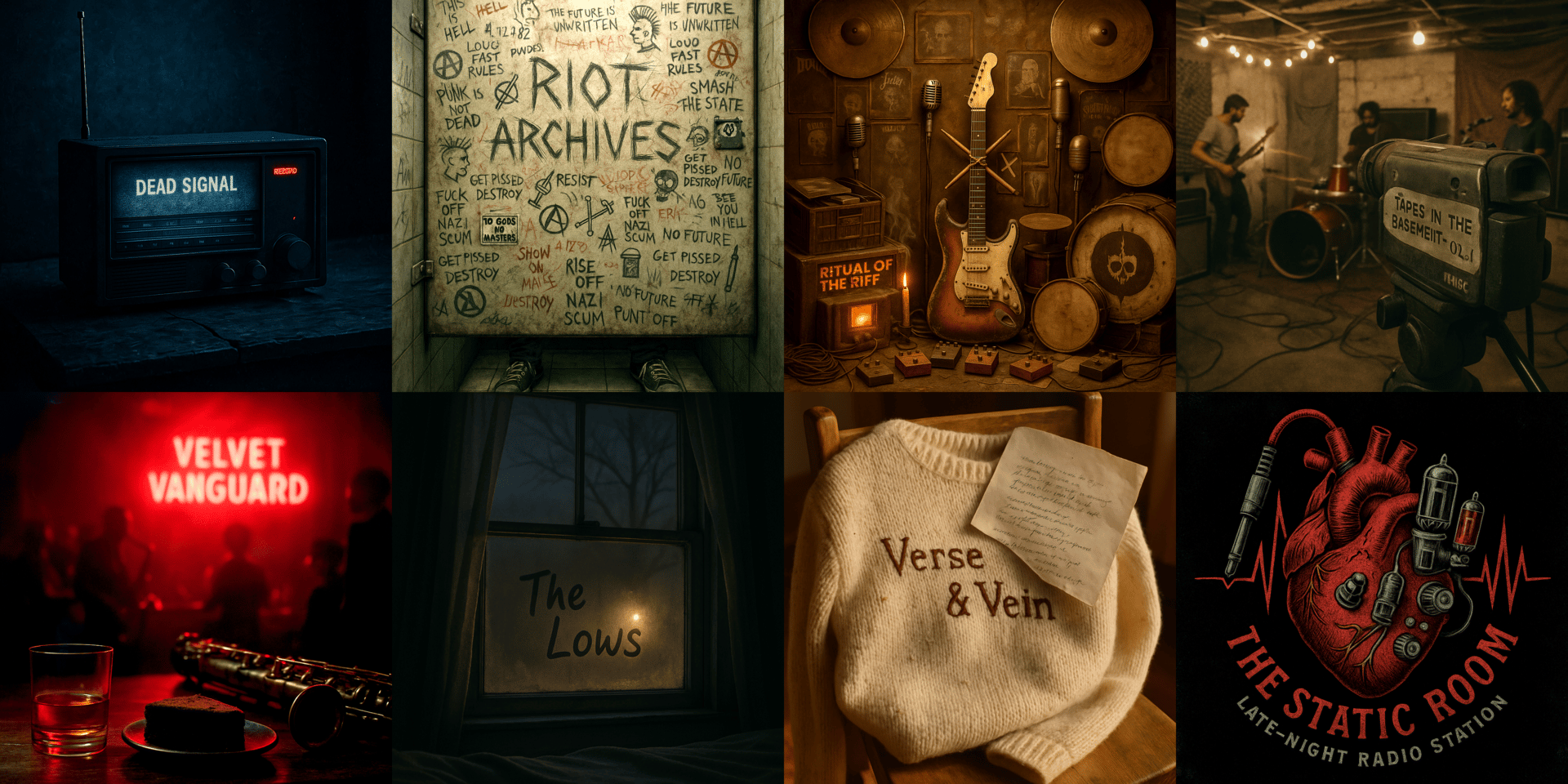 O subterrâneo onde bandas esquecidas continuam vivas. Demos de três acordes, bootlegs mal iluminados, faixas que só existiram no Bandcamp às 3h da manhã. O lugar onde Rebel costuma parar o focinho — e eu já sei que vai tocar na semana seguinte.