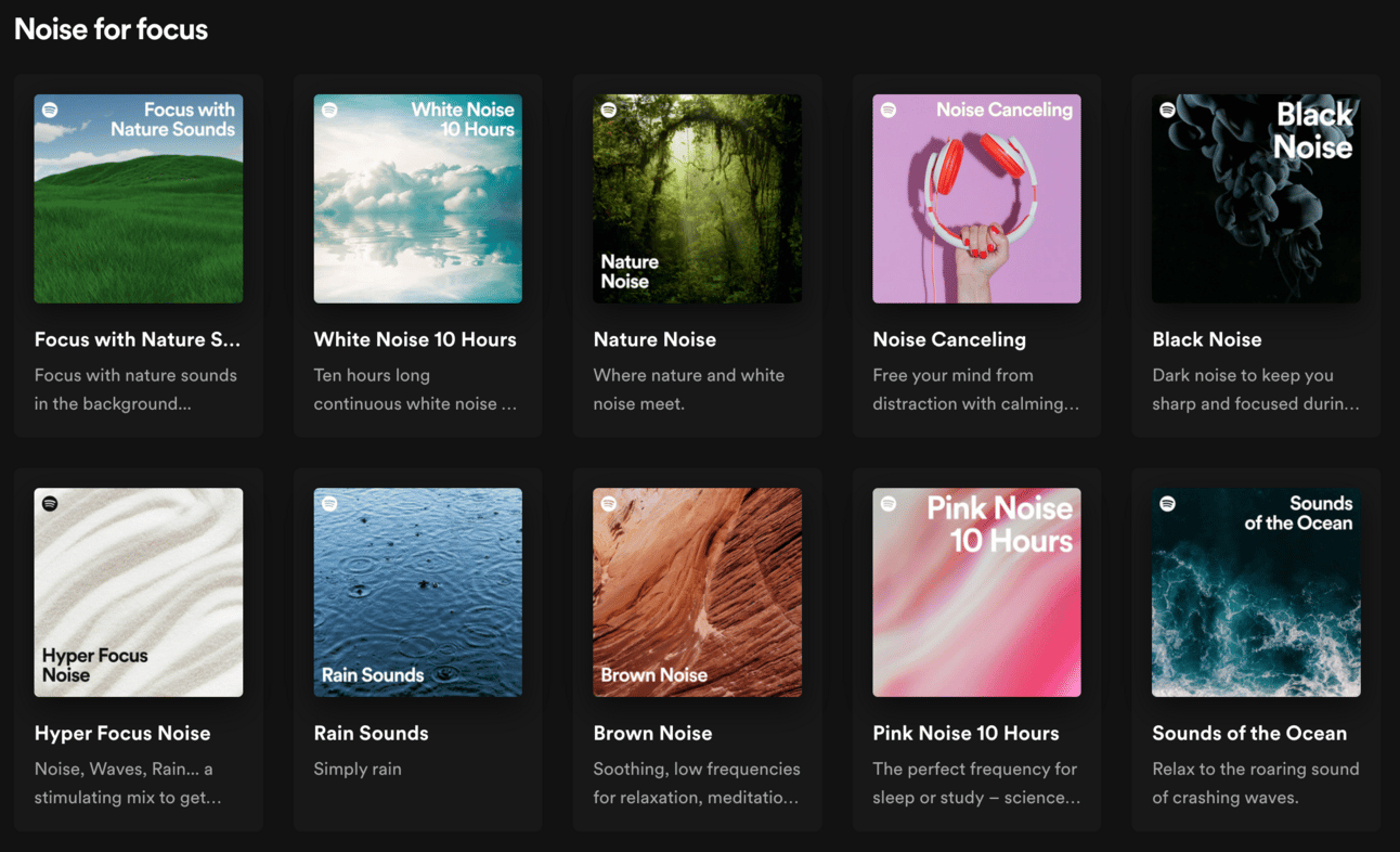E como dá para ver nessa seleção de playlists aí em cima, não existe mais só o ruído branco. Existem ruídos pretos, marrons, rosas, tem um ruído diferente para cada necessidade.