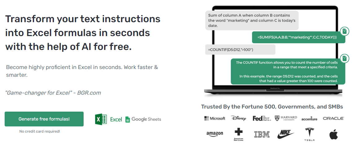 Se formos ficar mais específicos, lembro de um dia que eu queria somar só os itens de uma coluna do Excel que fossem marcados na coluna ao lado. Uma tinha os valores e outra tinha. Ou seja, eu queria usar uma coluna para marcar quais itens da coluna do lado deveriam ser somados. Eu nem sabia que o Excel tem uma função específica pra isso, mas pedi a fórmula pro ChatGPT que me deu uma que funcionou perfeitamente. Mesmo assim, existe espaço pro Excel Formula Bot, que é uma AI generativa que só serve pra criar fórmulas de Excel.