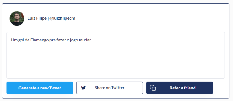 E chegou até a ter um pequeno erro no português mesmo. Mas, mais uma vez, o tweet genérico funcionando ok.